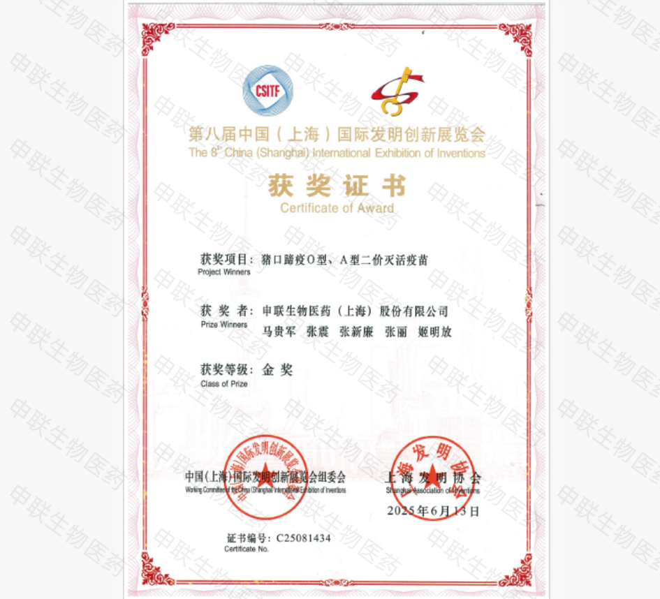 preventive biological products and veterinary diagnostic products. It has two GMP production facilities in Shanghai and Lanzhou and is a designated enterprise for foot-and-mouth disease (FMD) vaccines by the Chinese Ministry of Agriculture and Rural Affairs. The company focuses on diseases that threaten the safety of the breeding industry and have a high demand for vaccines.The products on the market include vaccines for swine FMD and porcine circovirus (PCV), and diagnostic reagents for FMD and African swine fever (ASF). It is also developing other animal vaccines and veterinary diagnostic products.