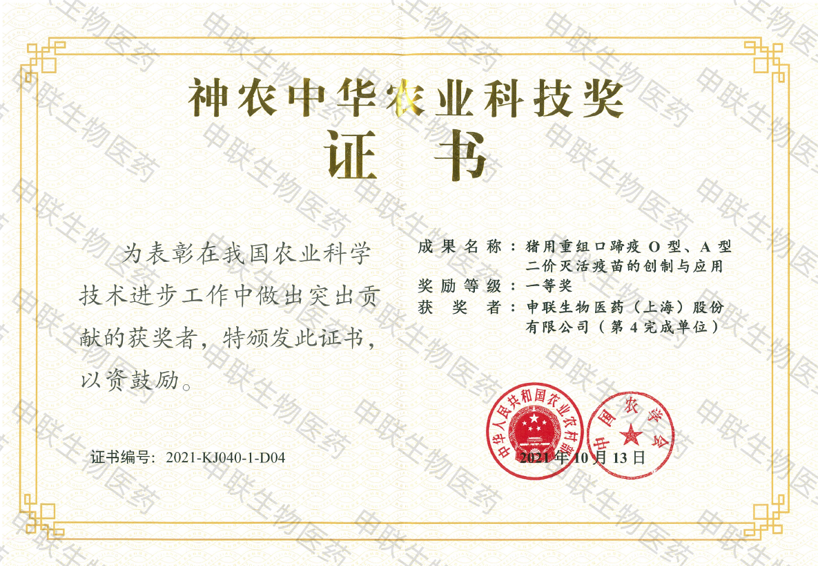 Shanghai Shen Lian Biomedical Corporation, established in June 2001 with a registered capital of 410.64 million RMB, is a high-tech enterprise specializing in the research, development,production, and sales of veterinary biological products. The headqarter is based in Shanghai.