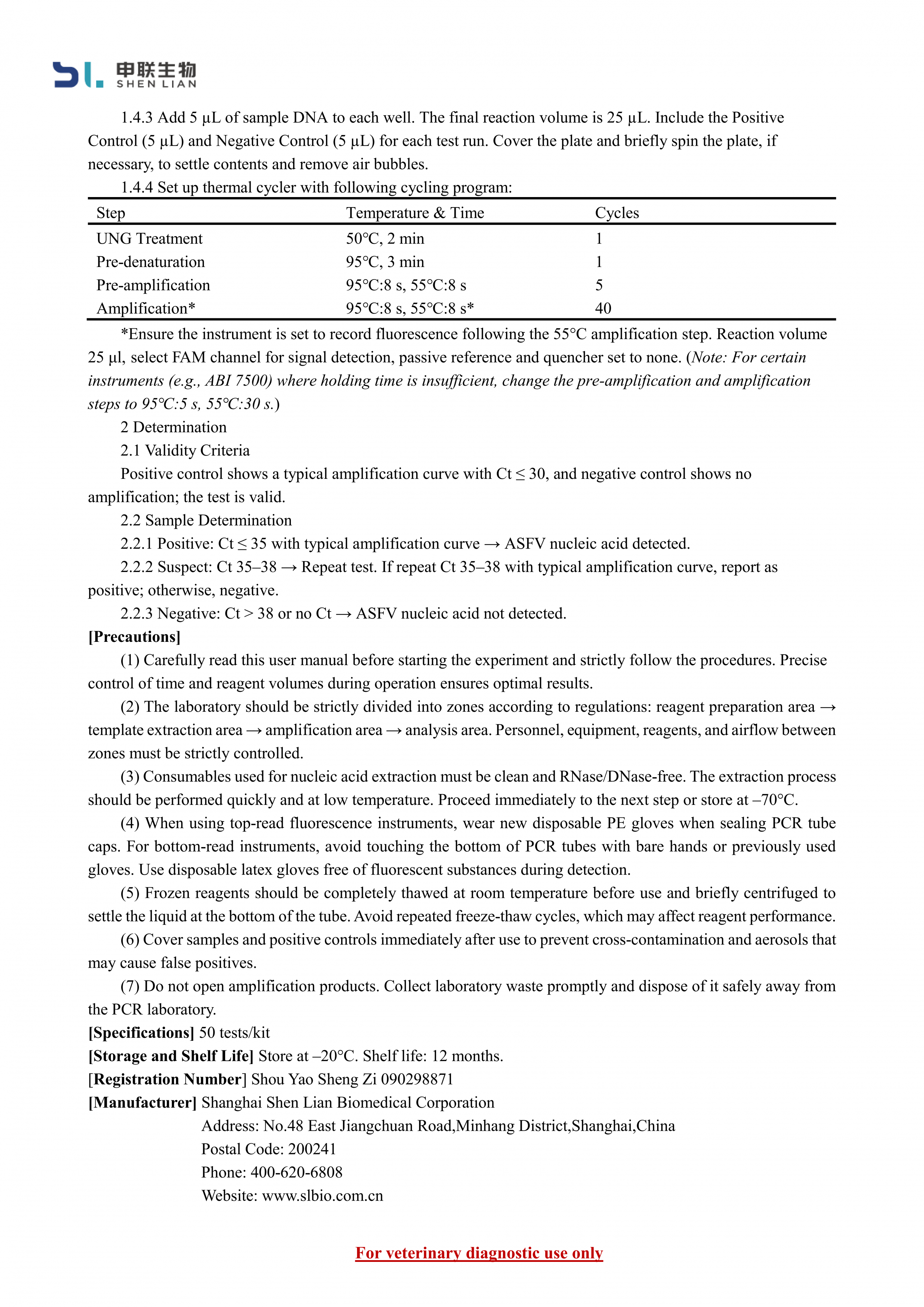 African Swine Fever Virus PCR Nucleic Acid Detection Kit